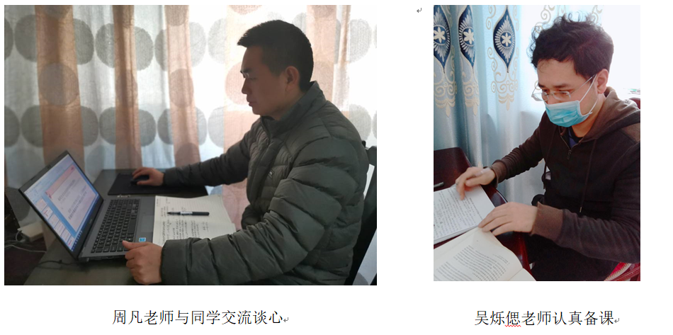 2020年1月23日起,在疫情严重,武汉封城的情况下,身处湖北的周凡老师、吴烁锶老师在完成学生管理工作、教学任务的同时,时刻关心学生,尽心尽力关爱、引导学生,做好学生的思想引领、学习引导和生活关怀。保证学生安全关、关爱学生成长,用自己的勤劳去拼出一份属于学生的安定,用自己的耐心与爱心为抗击新冠疫情献出最大的助力。疫情阻隔的是距离,但学生触碰到的是师魂。