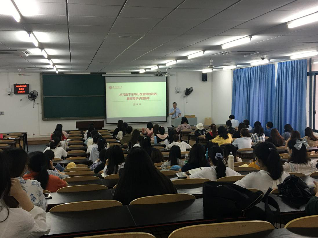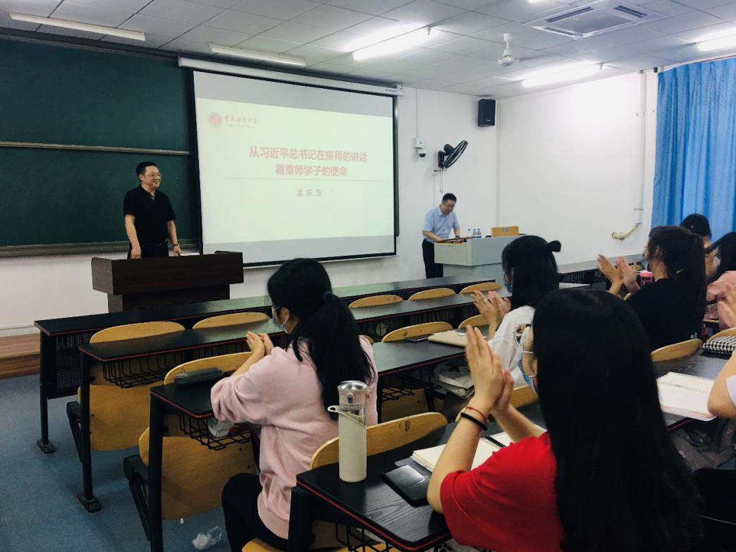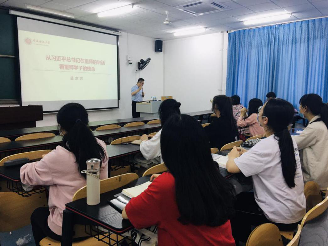 孟东方教授从“习近平总书记在重师的讲话”“从习近平到习近平思想”“习近平新时代中国特色社会主义思想”和“如何做一名新时代合格大学生”等四个方面进行了生动而细致地讲解。首先,孟东方教授以习近平总书记2010年12月7日在绅士漫画