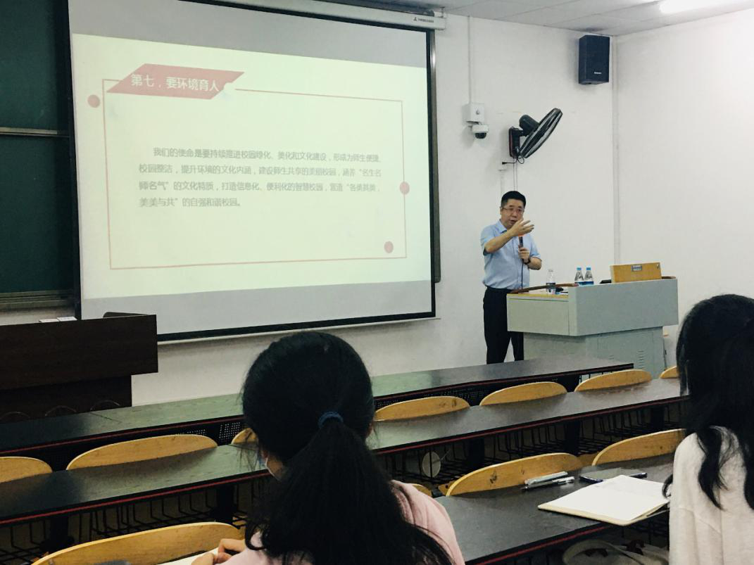 图书馆的讲话为切入,结合视频总结提炼了习近平总书记对大学生提出的“志存高远、珍惜时间、认真学习、文理交融、知行合一、重视就业、环境育人、身体健康”等八个要求。随后,他从“信念坚定,绝对忠诚党和人民”“实事求是,独立自强奉献祖国”“开拓进取,敢于创新善于创新”“勇于担当,事业心强责任心重”等八个维度向同学们介绍了习近平总书记的优秀品质,并勉励大家向习近平总书记学习。接着,他深入阐释了为何要坚持习近平新时代中国特色社会主义思想以及如何坚持习近平新时代中国特色社会主义思想。最后,孟东方教授向同学们提出了认清新时代、学好新思想、珍惜新时代、提升新素质、做好新准备等五点期望和建议,勉励同学们做一名新时代合格大学生。