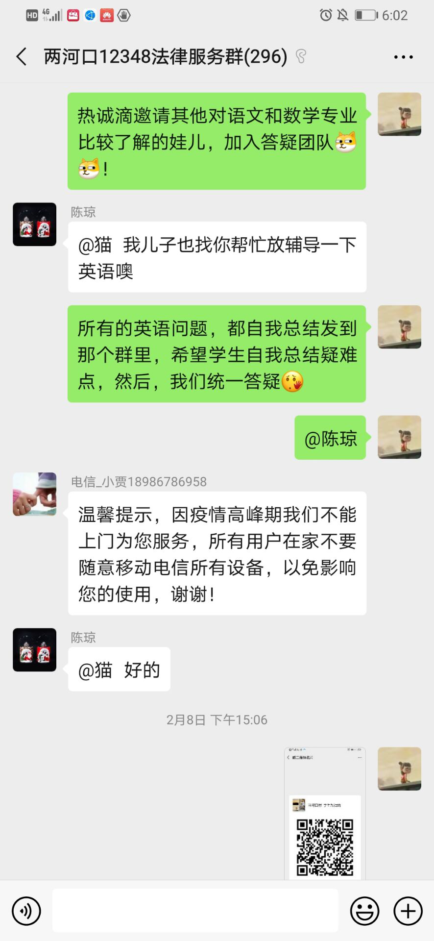 在此之前谭京凤每年回家都会去乡邻家给孩子辅导作业。2月5号,有村里的家长询问谭京凤能不能到家里给孩子辅导作业,京凤为了大家的安全和疫情的防控,就于2月8日她就建了微信群,并且推广到村里。