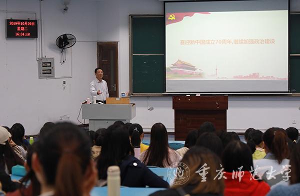 党委常委、副校长陈志军以“喜迎新中国成立70周年,持续加强党的政治建设”为主题,在弘德楼5015教室为历史与社会学院2018级历史学(师范)、文物与博物馆学、社会工作三个专业的同学们上了一堂精彩的“形势与政策”课。