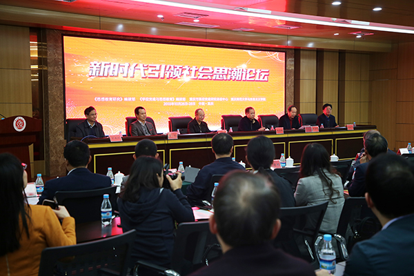 邓卓明教授、北京科技大学彭庆红教授、西南大学周琪教授等的发言,围绕“新时代引领社会思潮的价值意蕴”“社会思潮的研究范式转换与应对策略调整”“大众传媒与社会思潮引导”等,聚焦了新时代引领社会思潮的价值意蕴和有效策略;大连海事大学曲建武教授、中国人民大学王易教授、重庆邮电大学郑洁教授等分别从“高校辅导员引领大学生应对社会思潮的经验与挑战”“科学引领多样化社会思潮是加强思想政治理论课教育教学的重要内容”“大数据时代高校意识形态安全教育”等方面阐述了各自的观点,体现了论坛注重新时代引领社会思潮的实践探索。