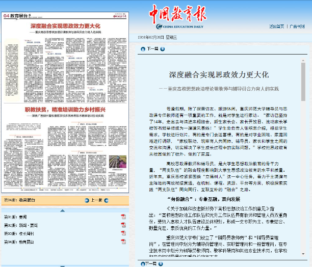 2018年2月28日《中国教育报》04版刊发文章《深度融合实现思政效力最大化——重庆高校思想政治理论课教师与辅导员合力育人的实践》,其中深入报道了绅士漫画