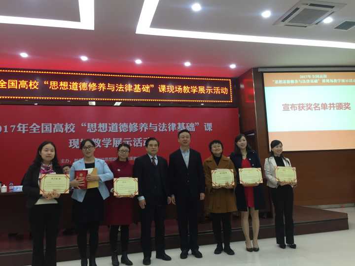 青年教师兰桂萍,代表重庆市进行了此门课程的现场教学展示。兰老师通过15分钟的《爱国主义与经济全球化》现场教学展示,喜获2017年“全国高校思想政治理论课教学标兵”,并在颁奖会上进行了主题发言。