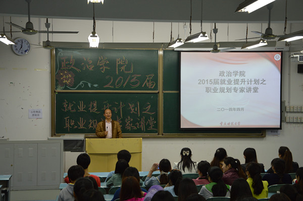 2015届就业提升专项计划”。学院已陆续开展2015届考研提升专项计划之“博士讲堂”、“教授讲堂”、“学长讲堂”,“就业技能提升计划之高低年级就业指导交流会”等系列指导性讲座。学院的高度重视和大力支持有利于帮助2015届学生提升求职技能,加强学院学风建设,促进学院提档升级。