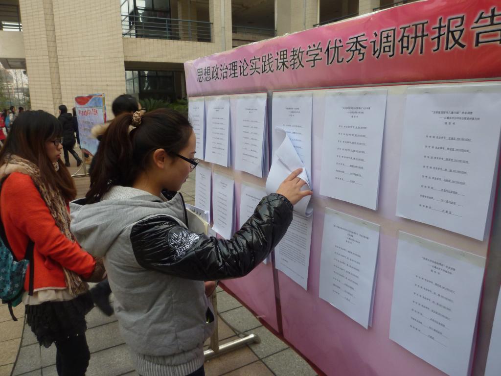 全体思想政治理论课教师以认真负责的态度,积极探索这一新的教学任务和教学方式。老师们采取集中培训、个别面谈、网络沟通、电话联系、文字修改等多种方式对学生的实践教学活动和调研报告撰写进行了全程督导和悉心指导。此次实践教学优秀调研报告成果汇报展不仅在于表彰优秀,也期望得到广大师生对思想政治理论课实践教学的了解、支持和帮助。政治学院学生会协办了本次汇报展。