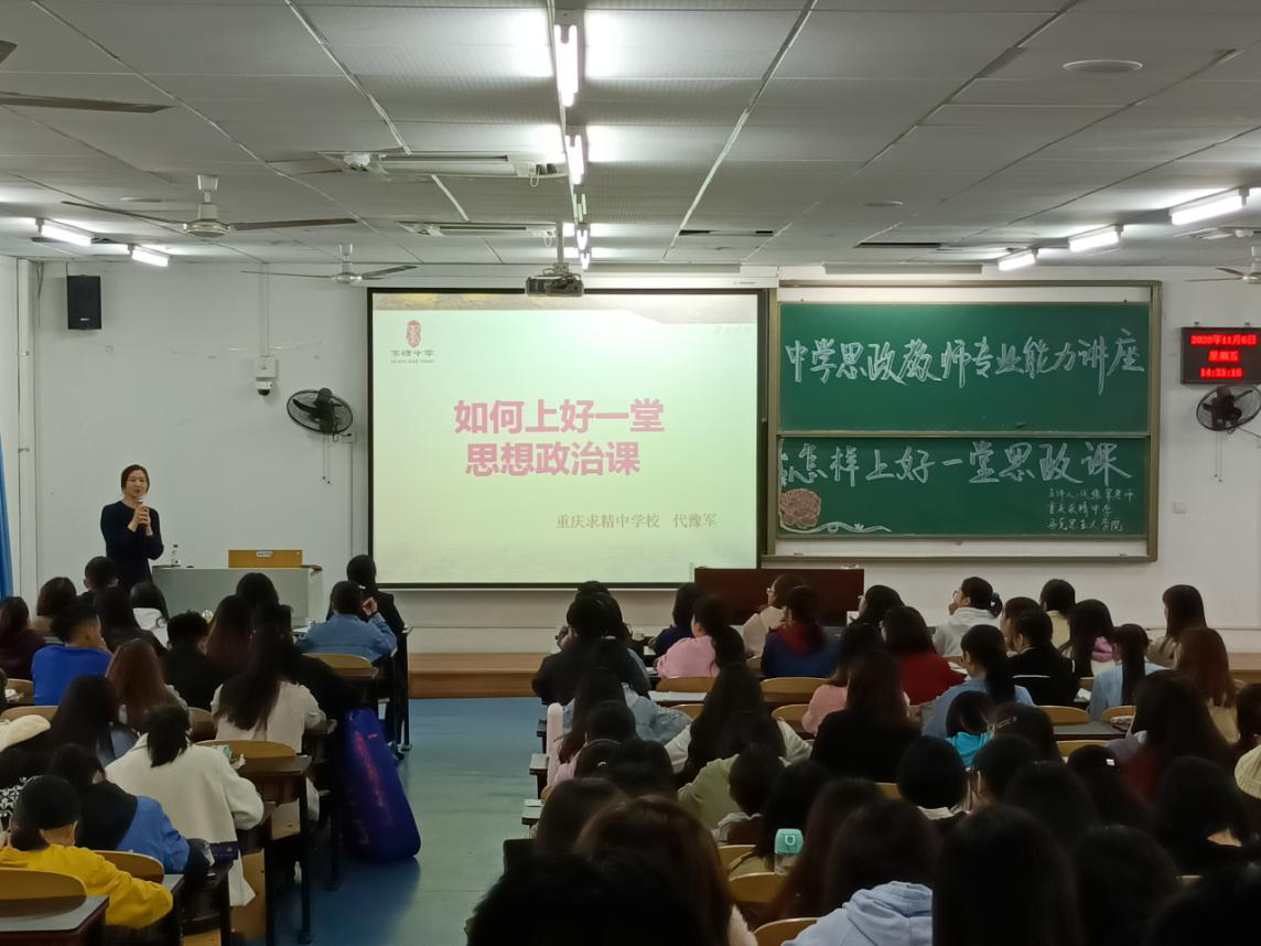 本次讲座,让同学们清楚上好一门思政课的标准,有利于同学们在之后的学习中不断深化知识、训练能力,在实践中上好每一门思政课。有利于同学们贴近一线课堂,了解思政课堂的教学要求,树立正确的教学理念,促进教学素质和能力的提高。