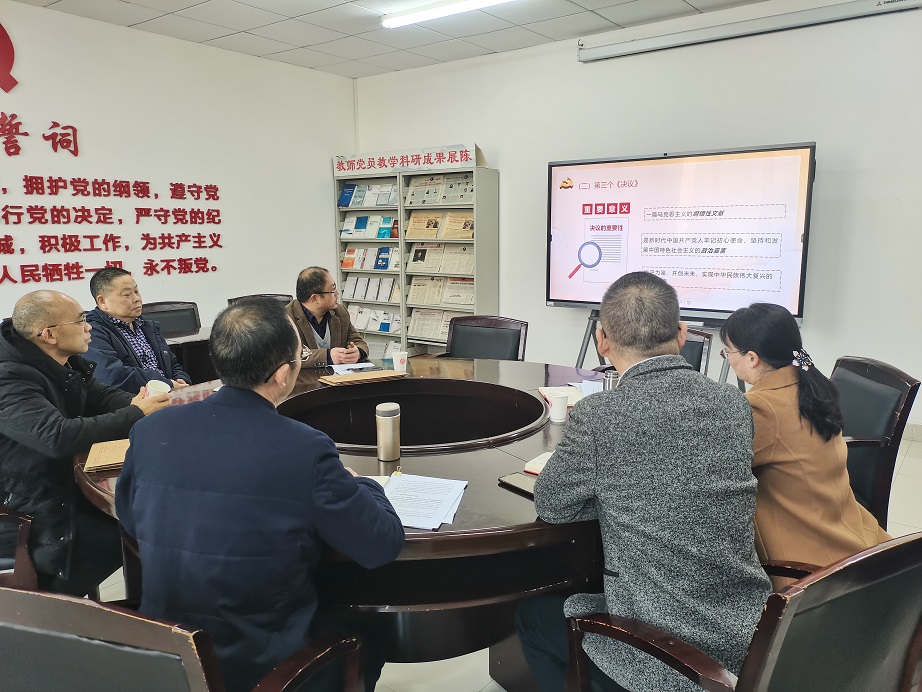 党委理论学习中心组在学院301会议室进行了党的十九届六中全会精神专题学习。本次学习会由党委书记李晓燕主持,党委委员田方林同志领学,全体党委委员、纪委委员参加了学习。