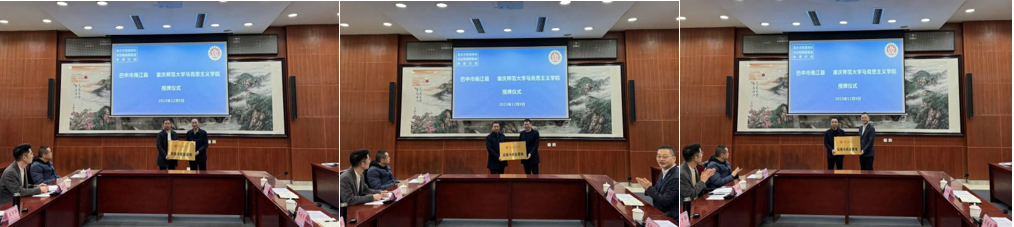 党委书记李晓燕、副院长姜土生(主持工作)、党委副书记方敏分别为南江中学、长赤中学、小河职业中学授予“实践与就业基地”牌匾。