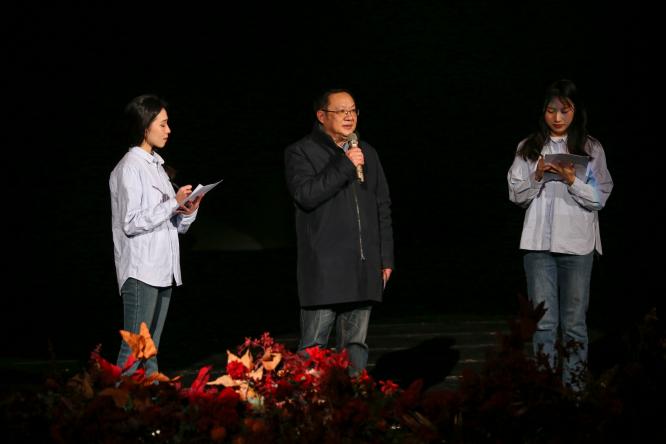 而后,当学生们进入陈洪教授的中国共产党历史的课堂,陈洪老师用两个党史小故事激励青年们要有敢教日月换新天的豪情,有直挂云帆济沧海的壮志。一群青年放声朗诵《青春》,奏响了爱国主义的青春华章。历史情景剧《横空出世》讲述了中国对于原子弹的研究从被国外敌视、国内猜疑到原子弹横空出世的艰辛历程,展现了马院学子的拳拳爱国之心。
