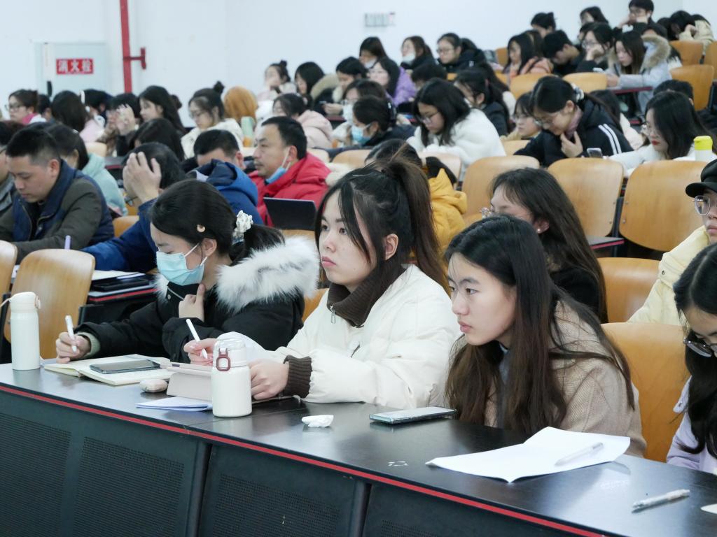 紧接着,郑瑜老师讲解了实习工作的具体内容和要求。郑瑜老师从实习准备期、见习期、试教试作及调研期、实习总结期四个阶段以及试教、试作、教育教学调研三大内容介绍实习工作,郑瑜老师强调教育实习作为独立教学实践环节,对同学们的学习提出不同要求,要求同学们做好实习、进校见面的准备,为实习工作的开展打下坚实基础;进校后,在指导老师指导下尽快熟悉班级情况和思想政治学科教学情况,认真备课、拟订班主任工作计划,做好教学、班主任工作实习准备;虚心请教、主动学习,大胆开展试教、试作、教育调查研究等实习工作,在实践中学习提升。