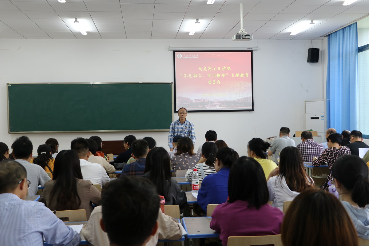 党委在汇贤楼X106教室召开了“不忘初心、牢记使命”主题教育动员大会。学院全体党员参加了本次动员大会,会议由学院党委书记刘军主持。