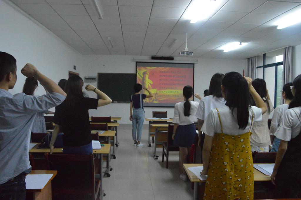 9点30分,活动正式开始。本次活动的第一项内容是重温入党誓词,在2014级学生丁雪梅的带领下,同学们全体起立,对着入党誓词庄严宣誓,他们坚定的语气体现了他们没有忘记自己的职责与使命,在不久的将来他们必将践行自己的诺言。宣誓完毕后,活动进入第二项内容,理论著作研读与交流,朱涛、陈虹、朱自玺等多位同学和大家做了读书分享,分享的有《毛泽东选集》、《近代中国的新陈代谢》、《费尔巴哈提纲》等多本理论著作,谈到了理论创新、国家变革、通俗化的哲学等多方面的观点,在座的同学们都受益匪浅。
