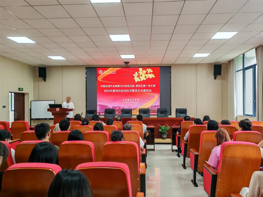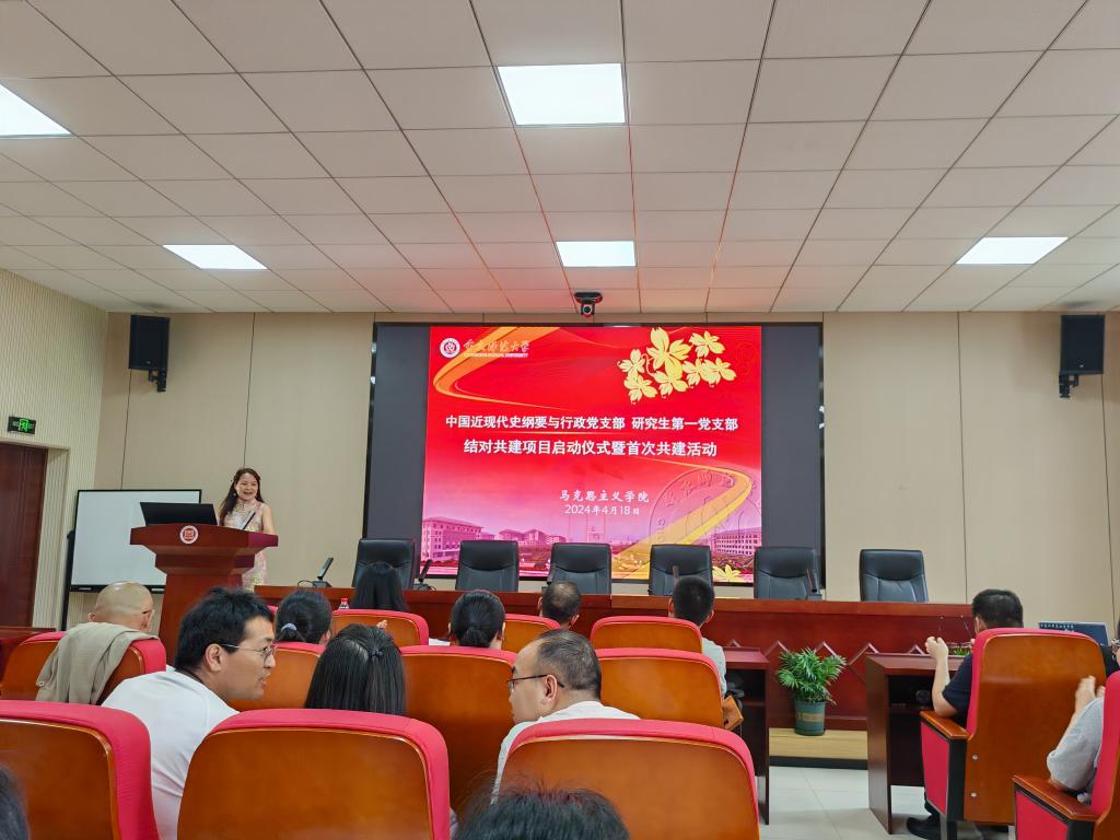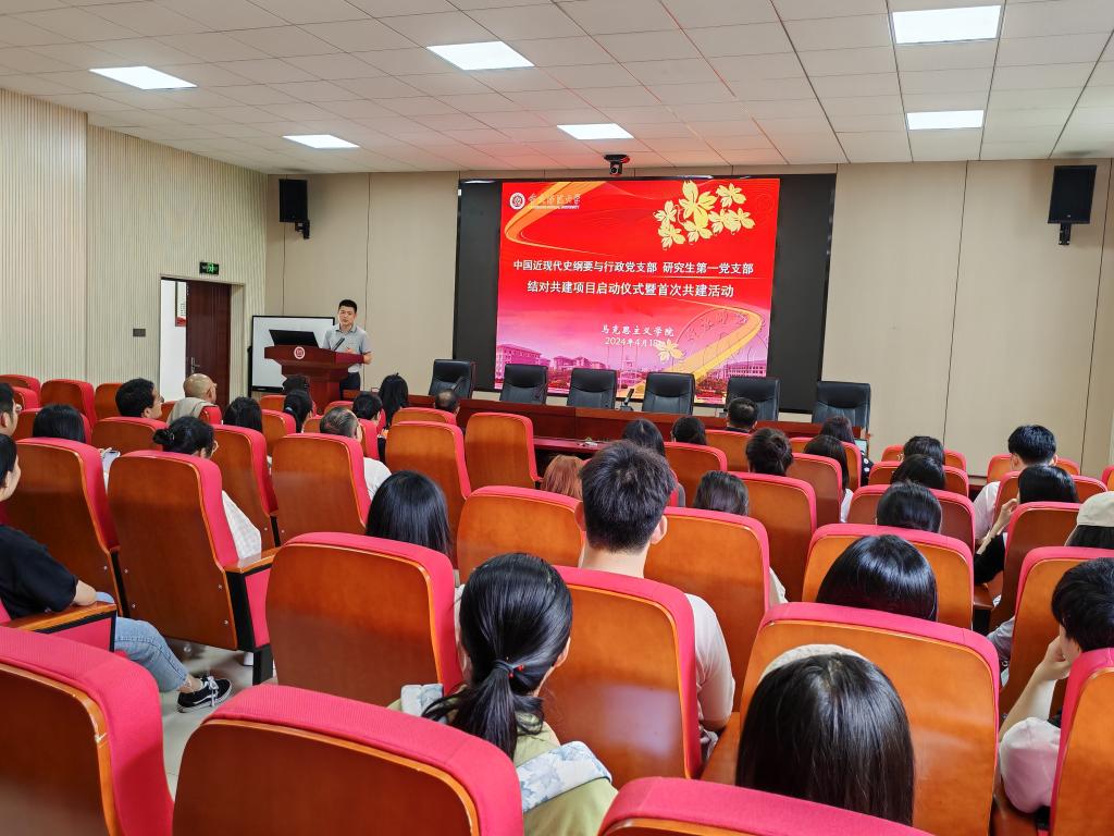 会议第一项议程:研究生第一党支部与中国近现代史纲要与行政党支部结对共建项目启动暨首次共建活动。共建活动第一步,是启动结对共建项目。研究生第一党支部书记李剑同志、史纲与行政支部支部书记黄正同志分别发表讲话,高度肯定俩个支部共建的意义,简要介绍了未来合作的内容与方式,并签署共建协议。协议签订之后,学院党委书记李晓燕同志提出未来两个支部要紧密联系、相互合作和相互促进,结出硕果的愿景。