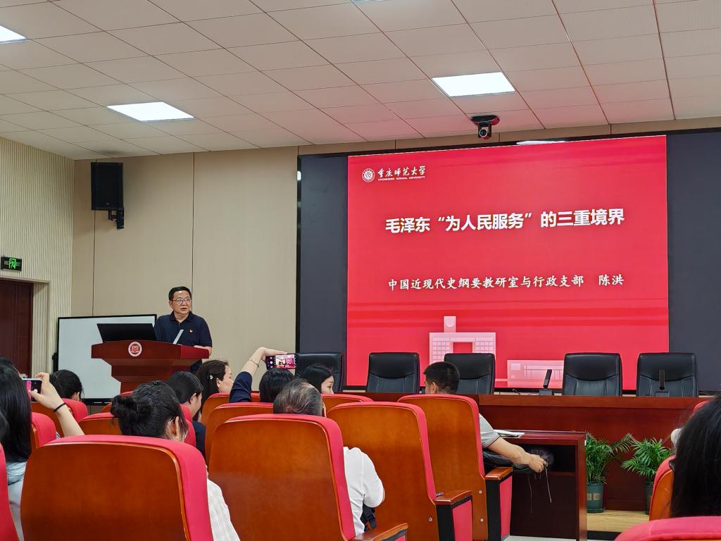 共建活动第二步是两个支部举行首次共建活动。主题是陈洪教授带领两个支部全体党员开展《“毛泽东‘为人民服务’的三重境界”》的学习。陈洪教授从毛泽东“为人民服务”到“坚持为人民服务”再到“全心全意为人民服务”的三重境界阐述中,呼吁全体党员同志在任何时候任何情况下都应该始终密切联系群众,坚持与人民同呼吸共命运的立场,坚持全心全意为人民服务的宗旨,坚持群众是真正英雄的历史唯物主义观点。
