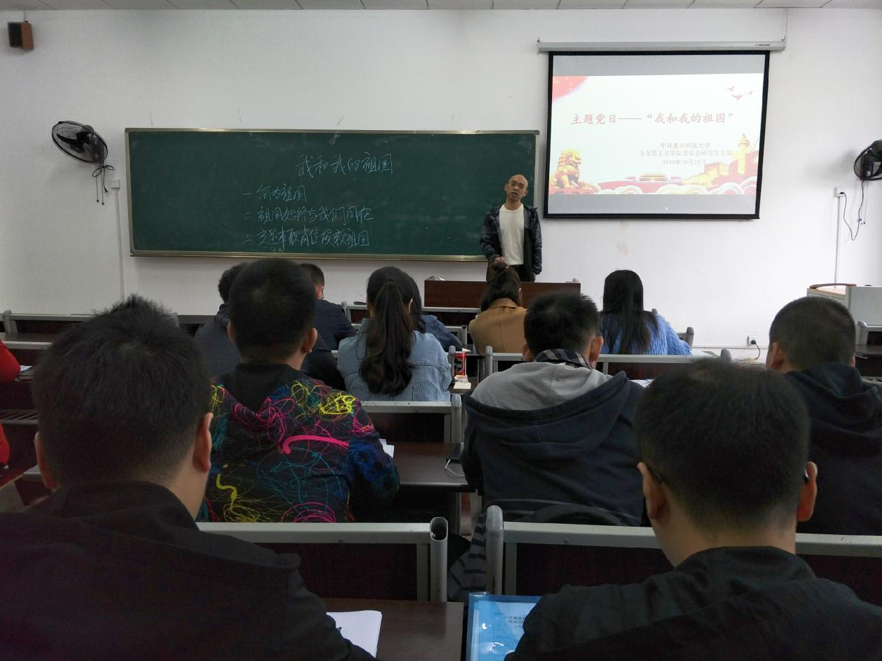 10月24日中午,绅士漫画 研究生党支部在汇贤楼107教室召开了“不忘初心、牢记使命”主题教育“我和我的祖国”主题党日活动,会议由支部书记李剑同志主持