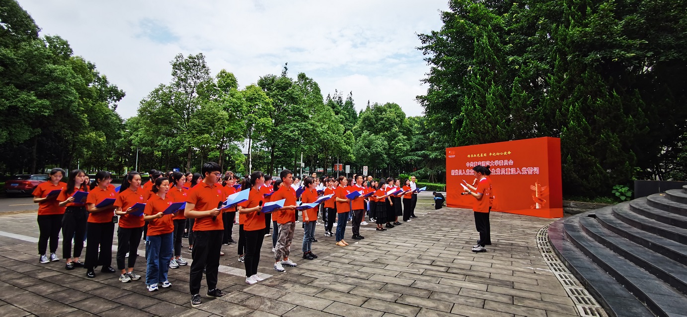 党委组织学生第一党支部、学生第二党支部、研究生党支部全体党员在学校党员承诺墙前举行了神圣而庄严的名为“百年征程,不忘初心”主题的党史经典诵读会暨新党员宣誓仪式。