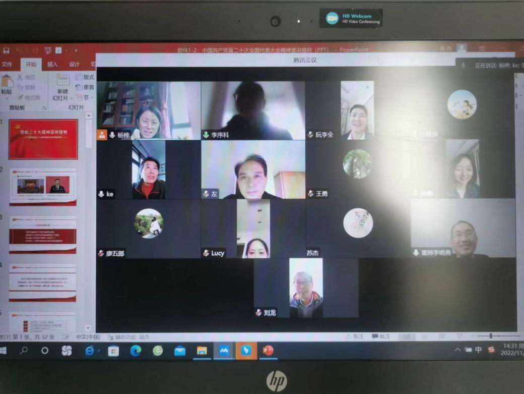2022年11月24日14:00,“思法”支部利用腾讯会议开展二十大精神宣讲学习活动。支部书记杨桦同志围绕党的二十大报告的主题,为全体成员带来了一堂生动的高质量党课。