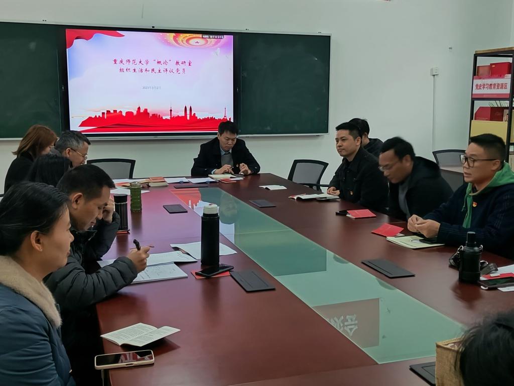 “概论”教研室党支部在学院楼107会议室召开支部党员大会,开展2022年度党支部组织生活会,进行民主评议党员活动。学院党委委员姜土生同志列席组织生活会并做指导,会议由支部书记郑瑜同志主持。