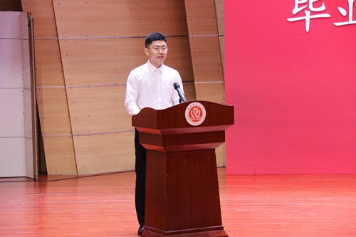 典礼第五项议程,优秀毕业生代表和低年级学生代表相继上台发言。