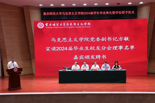 典礼第六项议程,方敏宣读2024届毕业生校友分会理事名单,并颁发聘书。根据绅士漫画