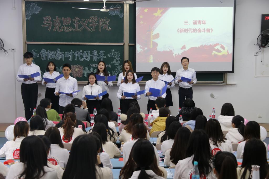 活动伊始,主持人宣布活动开始并介绍到场嘉宾。随后,同学们观看了视频《争做新时代好青年》,感受了新时代祖国的腾飞与发展,明确了新时代作为青年一代应肩负的责任和担当。观看视频后由支部同学分享感悟并展示自己的绘画作品,表现了对争做新时代新青年号召的响应。继而进行的知识竞答《我来概括好青年》,以问促思,带动支部同学思考新时代的好青年所蕴含的实质,现场气氛十分活跃。紧接着由本支部同学带来的《对话时代青年》,以朗诵对话的新颖模式凸显当今传承时代接力棒的青年人的初心和使命。随后,同学们带来的情景剧《新时代有志青年》,用生动而富有感染力的表演,讲述了一个青年从空想到奋进的成长过程,诠释了青年如何在新时代有作为,付诸行动去践行。最后的歌舞表演《我爱你中国》和《红旗飘飘》,用激昂慷慨的歌声和活力洋溢的舞蹈表达支部同学对争做好青年的决心和建设新时代的信心。在同学们合唱后,团日活动落下帷幕。活动环节结束后,由校团委的代表向同学提问,从整体上对本次团日活动进行了点评。