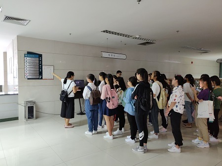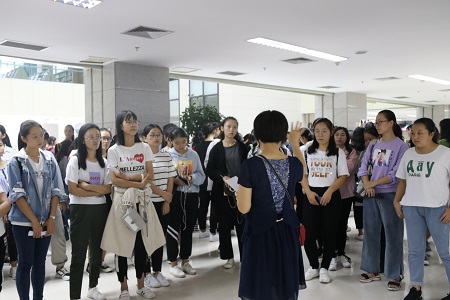 此次辅导共分为四个环节:入馆要求介绍、图书馆参观、馆藏介绍、文献资源检索及使用方法的培训。15时许,2018级同学由吴云老师带队进入图书馆,图书资源使用辅导活动正式开始。首先,吴云老师向同学们详细解读入馆要求:凭校园一卡通入馆、衣着得体、馆内保持安静等。紧接着,吴老师带领同学们参观图书馆各种设施,让同学们充分了解馆内设置和布局。