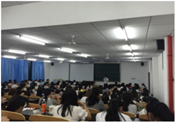 党委副书记姜土生老师担任主讲人,辅导员刘洪出席讲座,2016级新生全员参与。