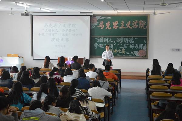 16时30 分,活动正式开始,选手们按照抽签顺序依次上台进行演讲,各选手围绕演讲主题各抒己见,激情饱满,侃侃而谈。其中,四号选手郑怡的演讲“为梦铸魂,做筑梦人”以最近的热门话题拾荒老人韦思浩的故事为开头,深刻阐述了一名合格筑梦人博大的胸襟与情怀,她铿锵有力的声调,声情并茂地讲述了筑梦这个伟大而艰辛的过程,并倡导学子争做优生,立德树人;五号选手崔倩倩就如何成为一名合格的人民教师发表了独到的见解:一是记住学生的名字,二是主动问候学生,三是终身学习。