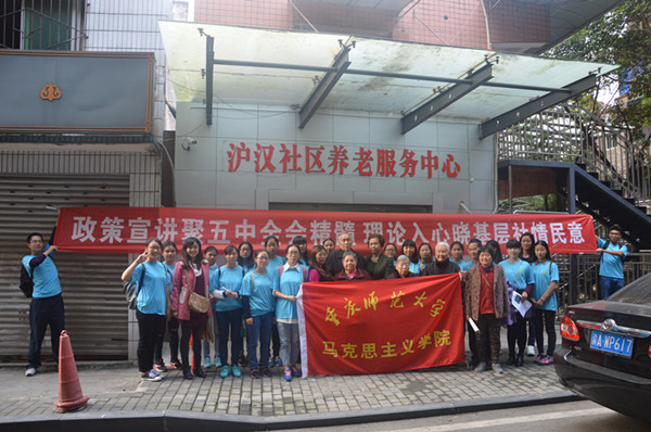 于2015年11月7日来到大渡口沪汉社区开展了志愿服务活动。院团总支·学生会成员、“中特”协会、三春湖廉风学社、辩论协会、法律协会、社会调查与研究协会部分成员来到沪汉社区。