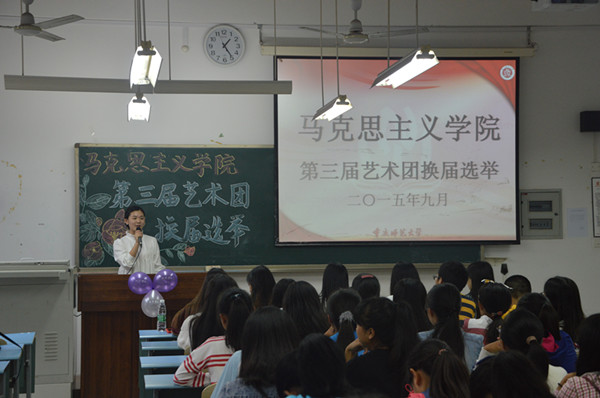 活动伊始,女生部部长胡潇欠上台致辞,她概要介绍了艺术团由最初成立到如今蓬勃发展的骄人成绩,同时,也表达了对艺术团未来的期许,赢得阵阵掌声。随后,选举正式开始。