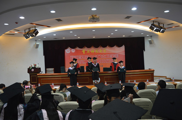 学位委员会授位决议》后,院学位委员会陈洪、孔毅、祝玉峰为获得学士学位的172名毕业生逐一颁授学位证。