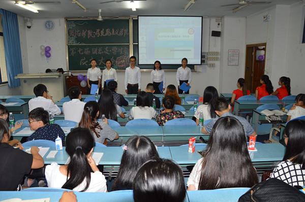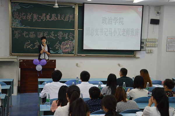 团总支书记马小又老师致开幕辞。大会第三项,与会嘉宾一同观看了本届团总支·学生会换届视频。接着,第七届团总支·学生会主席朱涛发言,他对第六届团总支·学生会全体成员表示了感谢,同时对新一届学生会工作做了总体规划和展望。