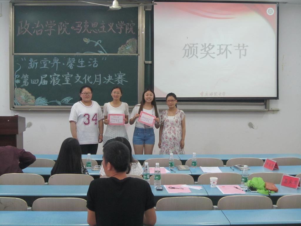 团总支·学生会生活部主办的第四届“新室界,馨生活”寝室文化月之创意表演秀决赛暨颁奖典礼在弘德楼5202教室举办。校学生会文娱部部长张瑾帆、生活部质检组副部长潘颢婷,绅士漫画