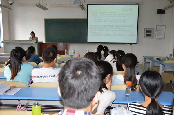 活动伊始,马小又老师做了简短讲话。她在充分激励同学们坚定考研信心的基础上,结合2012级同学预定的考研目标,悉心学习学长学姐们的成功经验,尽快正确定位报考学校,同时希望同学们扎实推进学习计划,刻苦学习,成就考研梦想。