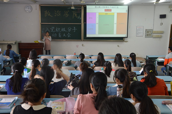 于2015年4月15日在弘德楼5202教室开展了第53期入党积极分子动员大会。学院辅导员张晓庆老师莅临大会现场进行指导,第53期全体入党积极分子参加大会。