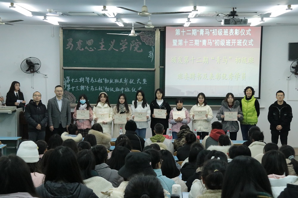 于弘德楼15302教室举办了第十二期“青马”初级班表彰仪式暨第十三期“青马”初级班开班仪式。