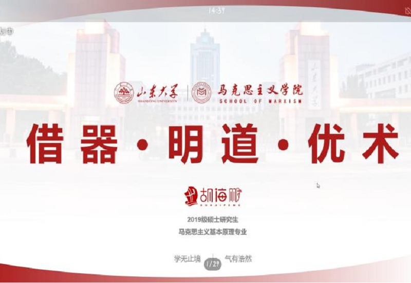 于线上为2021级新生做以“学术论文写作检索工具使用技巧培训指导”为主题的培训指导讲座。本次讲座特邀学院2015级优秀校友、现在山东大学深造的胡海鹏学长担任主讲人。2021级全体同学认真聆听,虚心学习。