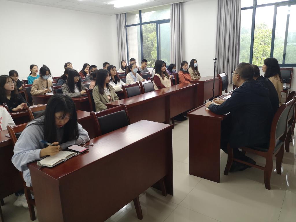 于汇贤楼309教室开展2022届毕业生就业交流会。学院党委书记李晓燕,党委副书记方敏、2022届毕业年级辅导员刘洪以及部分毕业生参加本次座谈会,因疫情原因,会议采用线上线下方式同时进行。