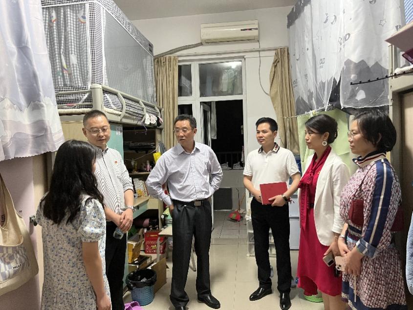 学生寝室,与同学们就日常生活、学习、毕业就业和寝室安全情况进行了深入交流。