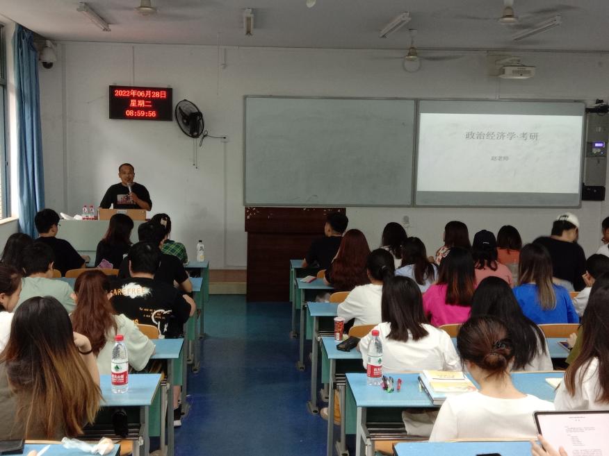 于弘德楼15204开展“马克思主义政治经济学知识考研指导”专题讲座,邀请赵玉民副教授担任主讲嘉宾,2019级思想政治教育专业本科同学积极聆听讲座。