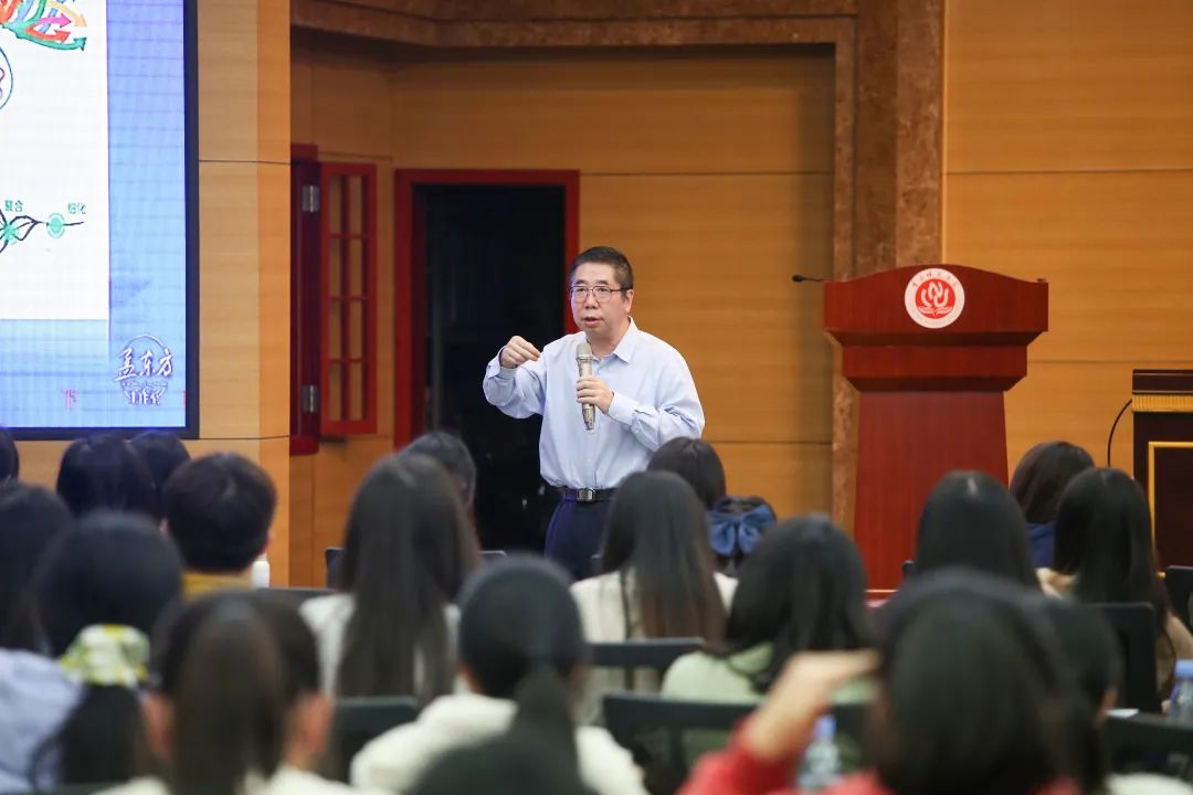 孟校长以自己本科毕业时写在毕业纪念簿上的话为例开始本次讲座,并与全体同学回顾了连续五年以“成长成才”为主题的在开学典礼的讲话。