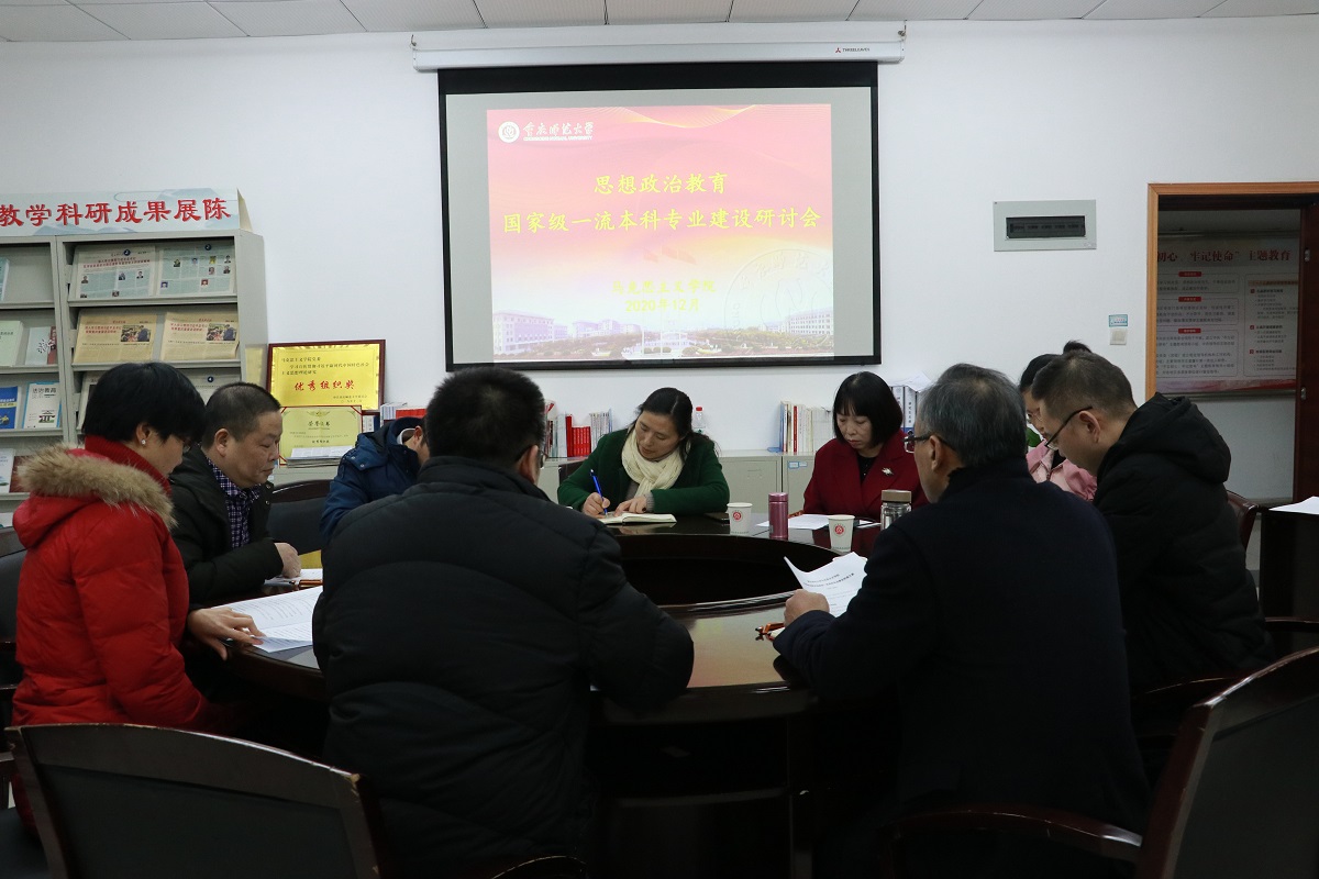 思想政治教育国家级一流本科专业建设研讨会在学院301会议室召开。学院全体处级干部、科级干部、政教系负责人参加此次会议。研讨会由院长陈洪教授主持。