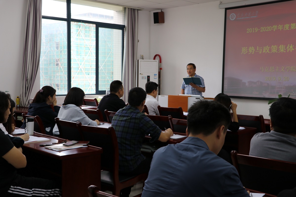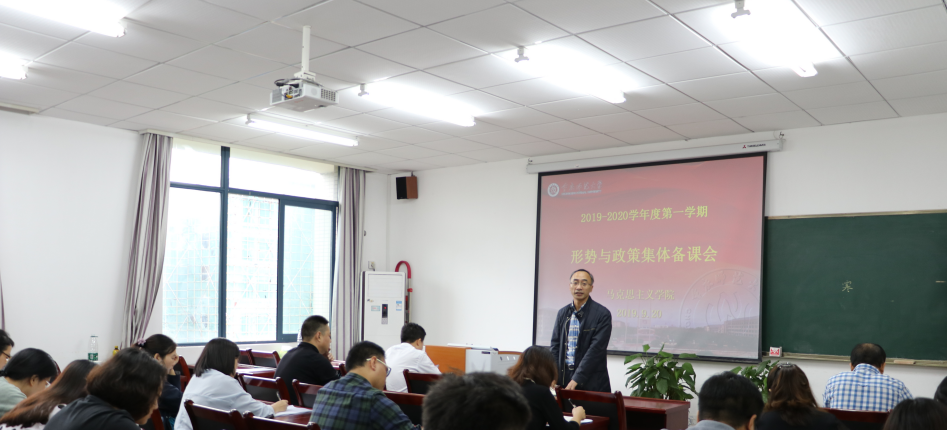 教研室副主任张敬对开课新变化和教学分组进行了简要介绍,提出本学期教学工作主要围绕“庆祝中华人民共和国成立70周年”和“中国经济行稳致远”两个专题开展。强调要切实加强教学管理,充分保证规范开课,准确把握教学内容,不折不扣贯彻教育部和学校党委文件精神。