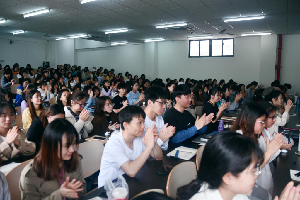 此外,靳老师对在场的同学们提出了四个小问题:是否对知识的价值做出判断、对学科的价值有何认识、对学生是否足够相信和尊重、认为学生怎样才能学到知识,引发了在座各位同学的思考,帮助同学们树立正确的教学观和教师观。