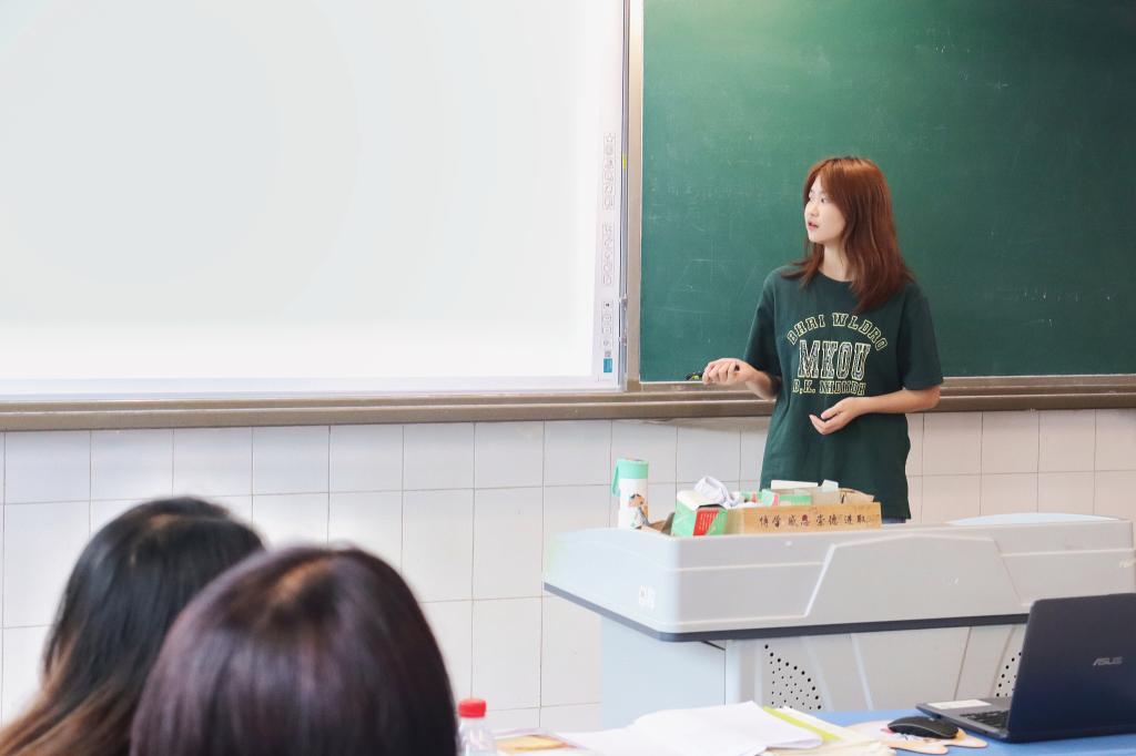 实习组长张籽言同学汇总实习组同学们的工作量、工作内容、工作状态和收获,谈到融入鱼洞中学的每一天,参与的每一项活动,给了同学们成长的平台,师范生技能和素质在实习中得到很大提高。